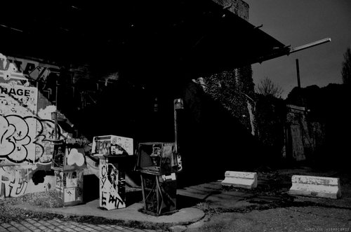 Automutation. Organe-potard en tissu bio-organique. Distorsions câblées. La loi des séries montée en dérivation. Des drones qui abattent comme des obus. Courir. De bonnes pompes, une veste fidèle en déclin. Du noir, des rails, des raids. Il choisit de choir sur moi un premier de l’an. Ses pupilles dilatées me transpercent autant le cortex que le verre pilé sur son faciès, couleur Bloody Mary saupoudré de Bath Salt. Et là, je serre fort une autre main que la mienne. On dit que c’est salvateur. J’avais oublié. Fuir un brunch faisandé. Des tartines de froid gras, des oeufs que trop brouillés, une tartiflette gout Tartuffe pour honorer le banquet des enflures. Intégration putride à en devenir apatride. Du savon noir au gant de crin sur des brûlures rémunérées mais non-déclarées. Des volutes arômatisées d’H2O vaporeuses dans les bronches. La sensualité des abîmés. Une connexion non-exclusive à prendre ou à lester. Les chimères rafistolées au Sterilstrip. Une colonne vertébrale bitumée, aux filaments de lights orangées comme moelle épinière, longée à 140 -A 160 en Honda Civic- Foncer tête biaisée. Un bol d’air vers les polders. Une ère. Des aires. Radiation Texaco en rouges néons tungstène. Une lettre s’éteint. On s’étend. L’aube de la nuit entre 4 et 5 pm dans une énième weirdzone. Bucolique panorama pré-apocalyptique. Prendre de la hauteur. Une cabane mentale comme un haut château dont nous serions les maitres. Etage 4. Une ellipse, une onde décentrée sans gravité. Une boucle saillante comme les extrémités. Les flammes des arcs électriques. Fusion confuse encapsulée. “Prends moi, surprends moi mais ne me reprends pas” je me dis. La distance ou l’effondrement. Mentaliser là son propre génome, sa carte auto-routière montée en caryotype. Un bug signalé. Avertissement vocodé. Un capside hélicoïdal aussi bien planqué qu’un radar. Ca donne envie de s’en griller une. En oublier de faire des mômes. Une enseigne discount. Un mirage d’oasis lacrymal. Une réaction vaine. Un moteur hybride. Briller. Exister. L’exil.