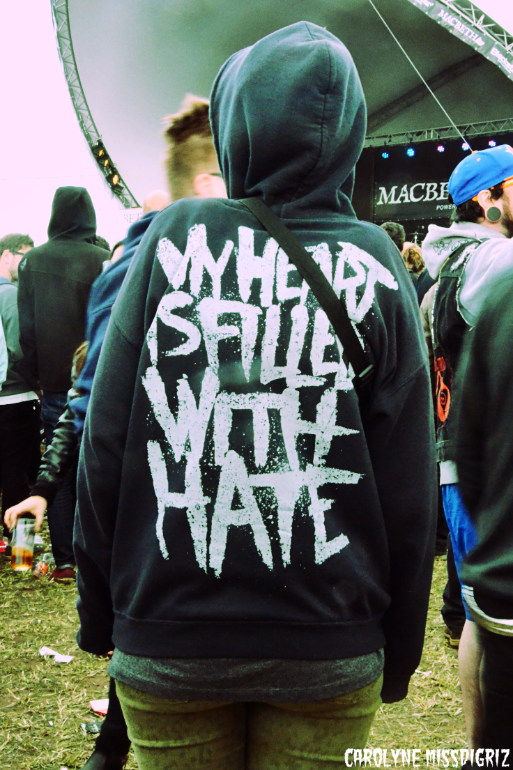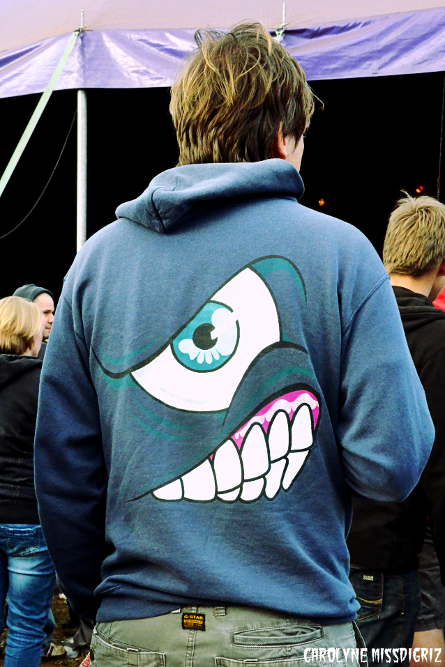 L’idée étant de mettre en valeur le formidable potentiel (ré)créatif du public, mais…de dos. En effet, ces placards d’ornements souvent D.I.Y. font partie intégrante de notre champ de vision lors de festivals, concerts et pour les plus aguerris, lors des incontournables mosh-pit inhérants à tout respectable set punk-rock… Je laisse donc parler les images, pour ce point subculture ‘fashion plus orienté « HXC Punk Backstage » que « Coachella Uber Alles ». Petit florilège, enjoy !